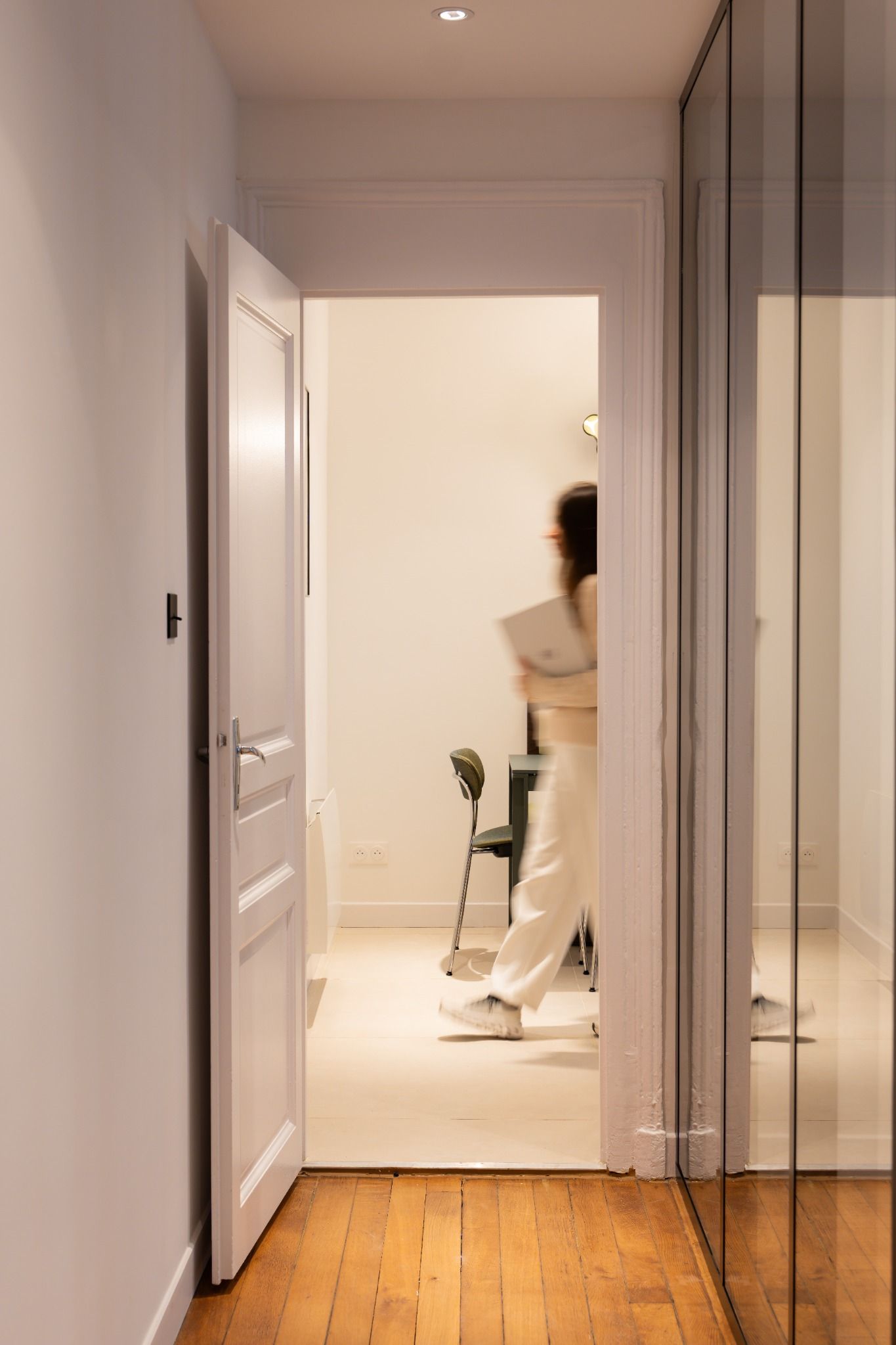 Le plateau a été entièrement transformé en un open space lumineux et fonctionnel de 16 postes, pensé pour le confort, la circulation et la performance des équipes. Le projet a inclus la réfection complète du sol, l’intégration discrète des réseaux, la mise en conformité des installations électriques, un éclairage soigné, du mobilier ergonomique et des solutions acoustiques adaptées. Un espace clé en main, prêt à accueillir les équipes dans des conditions optimales.